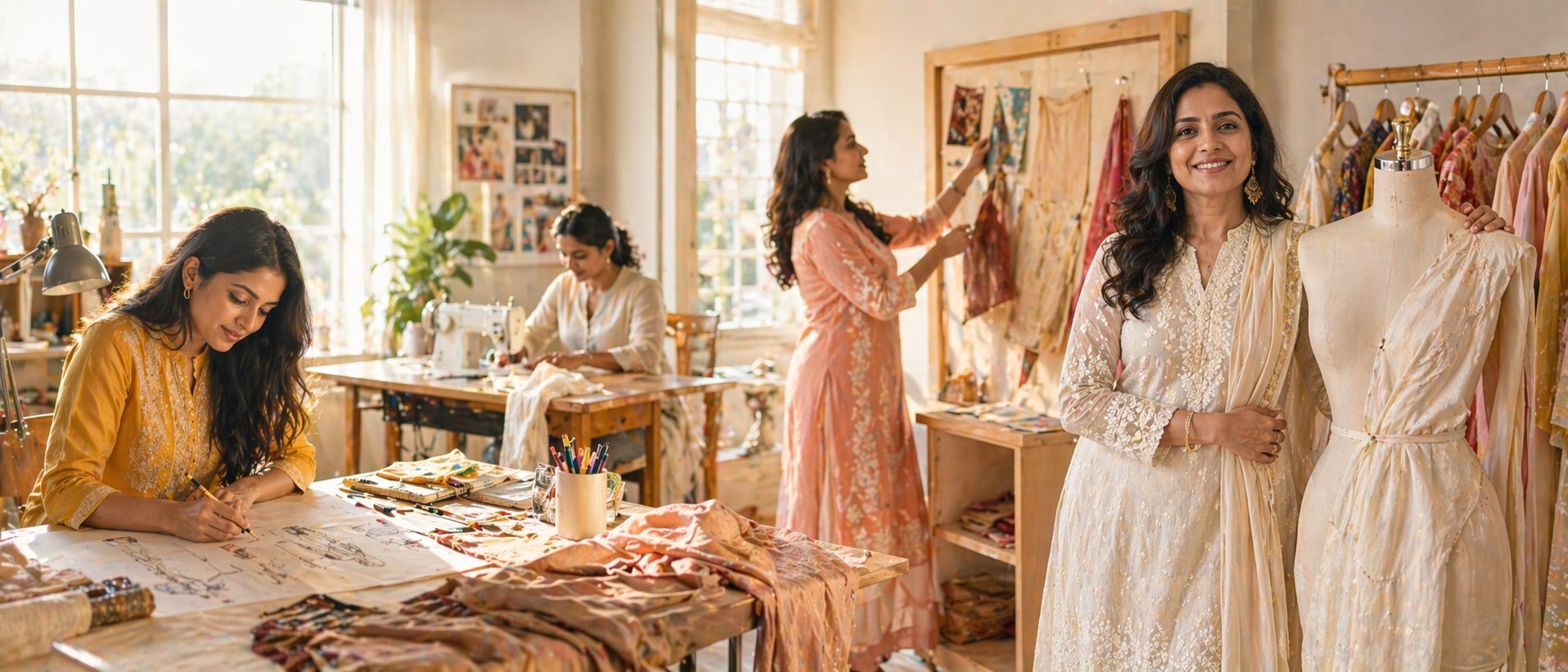 Patterns, draping, portfolio aur placement β from home, in Hinglish. NID & NSDC certified. 2,000+ mahilaein already earning.