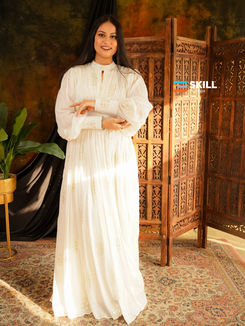 Inspired by the rich culture of India, Meenakshi’s collection blends traditional crafts with soft, elegant styles that reflect her love for timeless beauty